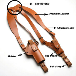GunAlly Universal Leather Shoulder Holster Compatible with Glock 17/19, 1911 Pistol/Taurus ,M&P,Sig Beretta 92FS and More, Vertical Concealed Holster with Double Mag Holster