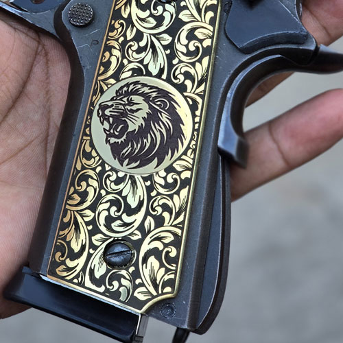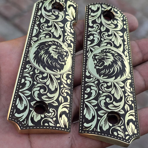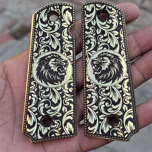 Upgrade your 1911 with our Premium Brass Pistol Grip. Our 1911 grip is machined from solid brass for enhanced weight and an improved recoil mitigation. It features an aggressive grid texture that provides superior traction and control. Unlike any other grips on the market, this product is expertly crafted by our master artisan and fits all government model 1911s comfortably in the palm of your hand. Enjoy a comfortable shooting experience with our superior 1911 pistol grip!