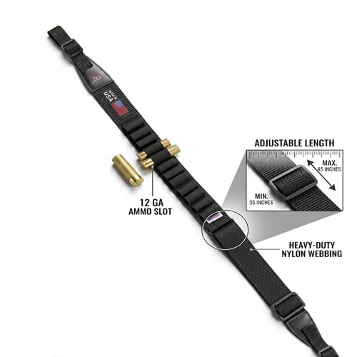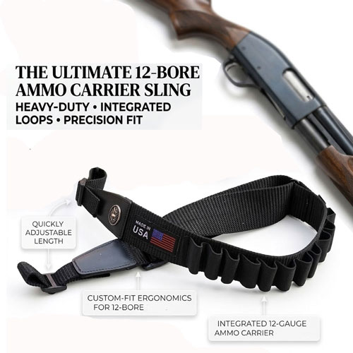 Integrated 12-Round Ammo Carrier: The sling features reinforced elastic loops that securely hold up to 12 rounds of 12-gauge/12-bore ammunition for lightning-fast reloads.