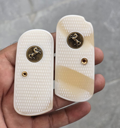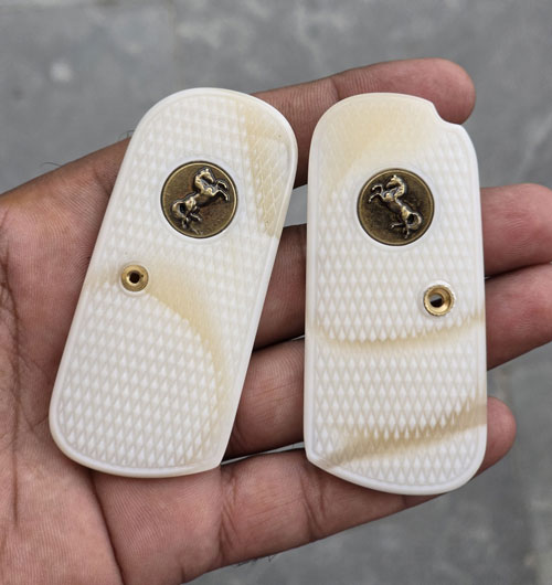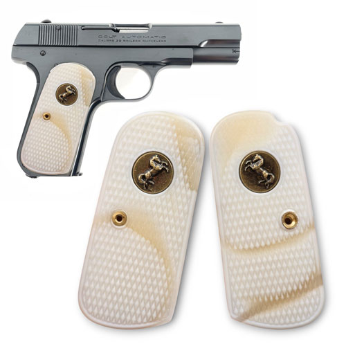 Upgrade your Colt Model 1903,1908 Hammerless .32 Pocket Pistol and the Colt Model 1908 Hammerless .380 Pocket Pistol.  Pistol . This  Royal White Grip enhanced weight and an improved recoil mitigation. This grip that provides superior traction and control. Enjoy a comfortable shooting experience with our superior Colt Pistol grip!