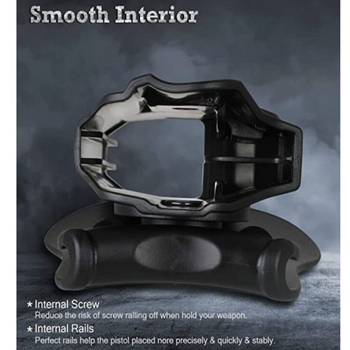 The Cytac R-Defender holster is made of an improved military-grade polymer material that is smooth and thicker at the same time. The holster is thus more durable and looks better at the same time. Thanks to the hidden buttons, the surface of the holster is flat, and the anti-slip strip helps to find the button by touch.