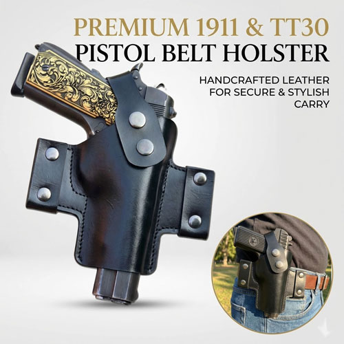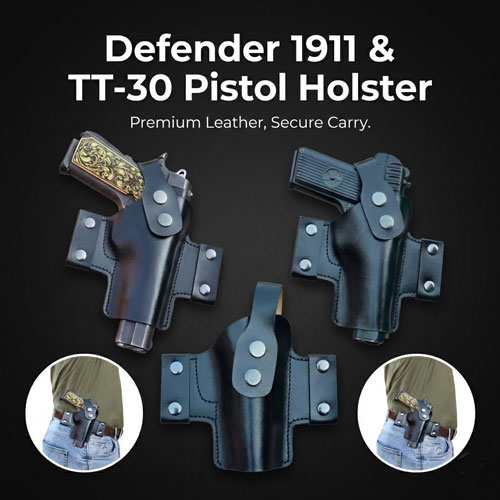 GunAlly OWB Defender Style Leather Gun Holster for 1911/TT-30/9mm Model Pistols
