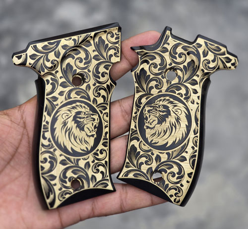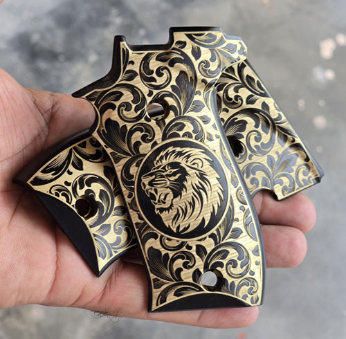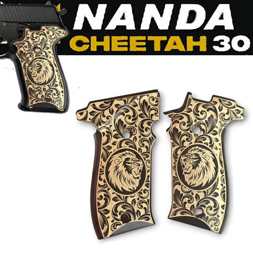 Upgrade your .30 Caliber Nanda Cheetah-30 Pistol . This Grip is machined from solid brass for enhanced weight and an improved recoil mitigation. It features an aggressive grid texture that provides superior traction and control. Enjoy a comfortable shooting experience with our superior .30 Pistol pistol grip!