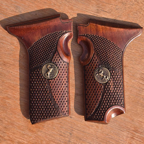 These fine wood grips fit the MSD Falcon 30 Pistol and Russian Tokarev pistols model TT-30 and its clones without the additional safety. Made from Wood, checkered with the logo , oil finished. Grips are ambidextrous and hardware is included and installed.