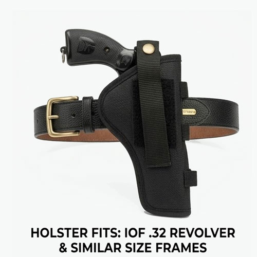 - This tactical hip holster is engineered to provide a high-performance carry solution for the Indian Ordnance Factories (IOF) .32 caliber revolver and similarly sized compact-frame revolvers. Designed with both security and rapid accessibility in mind, this holster is equally at home in professional, tactical, and civilian environments. The cornerstone of its design is ambidextrous functionality, ensuring that all shooters, left or right-handed, can utilize this holster without modification or compromising their primary draw hand.
