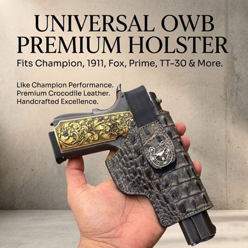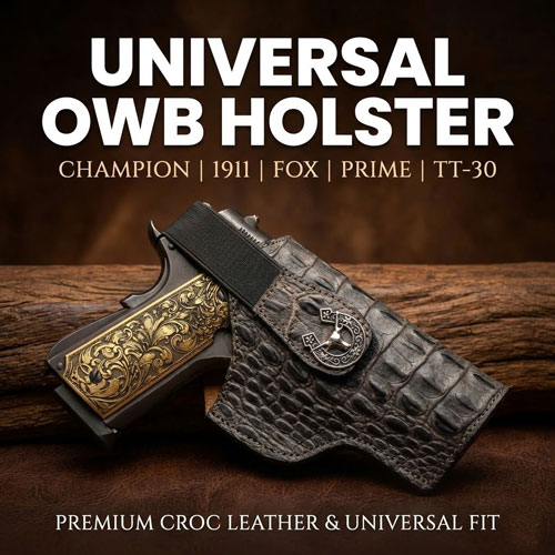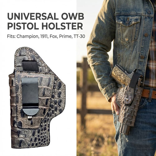 Universal OWB Gator Embossed Pistol Holster – Fits 1911, TT-30, Fox, Prime Models Small to Big Pistol Holster