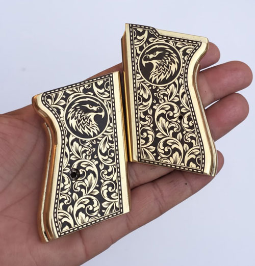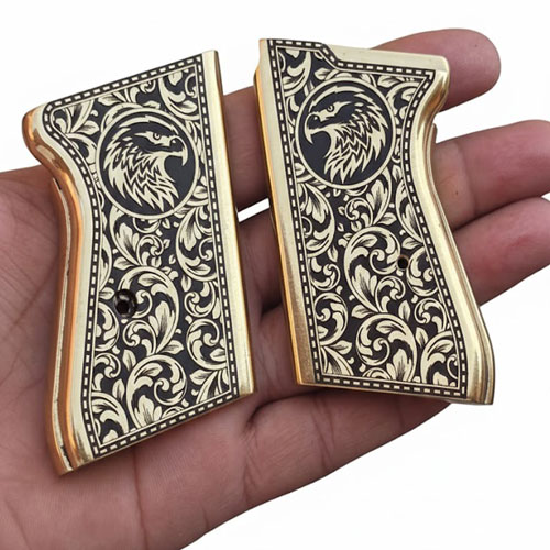 Intricate Artistry: Each grip panel features a majestic eagle emblem set against a detailed “Crossfire” floral scroll pattern, providing both beauty and enhanced tactile texture.