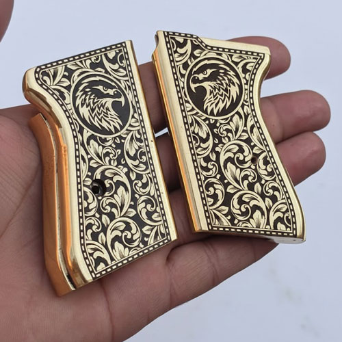 Elevate your classic sidearm with these New Light Crossfire Brass Grips, specifically precision-engineered for the Walther PPK. Featuring a stunning high-polish gold finish and deep-etched scrollwork, these grips combine traditional luxury with a bold, modern aesthetic.